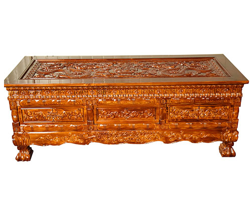藏式家具中的藏式茶几和炕桌的外形与结构多样,除用于宗教礼仪和特定仪式的在造型、结构、图案和色彩等各方面有一定的要求外,一般均用于吃饭、喝茶。以彩绘和雕刻的形式,大多数采用龙、大鳌、海螺、独角兽、珠宝和花草树木等代表吉祥和财富的背景图案。