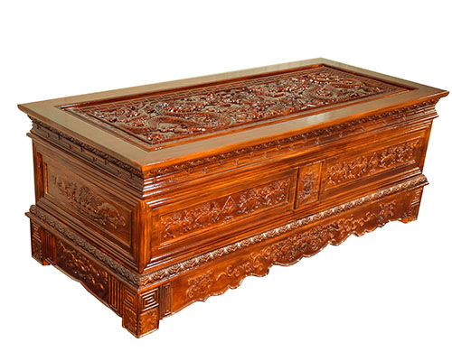 藏式茶几由西藏传统的佛堂供桌演变而来,大约在五世达赖时期基本定型,茶几是西藏传统家具中的一大系列,一般分为两种类型,即组装固定的家庭型和可折叠的携带型。前者体积较大,工艺及木料都很考究,往往将彩绘、雕刻、沥粉贴金等工艺融入其中。其纹饰大多富丽繁华,宗教色彩浓厚,常把具有藏教神话色彩的佛像、怪兽、花鸟、走兽等通过大胆的构思、鲜艳的色彩和华丽的装饰绘于其上,从而形成了独具一格的藏式古典家具。常见的纹饰还有螭龙纹、瑞兽纹、植物纹、雷云纹、几何纹等,纹样大都与财富、吉祥有关。具有浓厚的民族风格与独特的艺术特色。