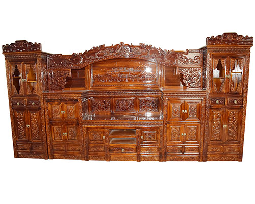 藏式家具施彩中的另一个重要手法是彩绘。藏式木器表面除雕刻外,在一些部位还绘有各式图案,四周有回纹,竹节等固有图案纹样装饰。其彩绘的技法主要有:平涂钩线、三重色、立粉堆金、贴金等。